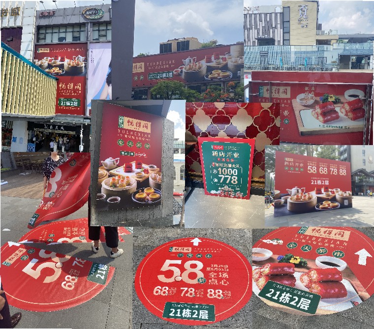 所有能做的觸點出發如:MALL(商場門口品牌墻、商場戶外廣告、地貼、電梯、樓層導視、電梯內廣告、扶梯、吊旗、包柱、燈箱、墻體海報、刀旗、吊幔),網絡(大眾點評、微信、微博、頭條、抖音、小紅書、網站),大眾媒體(公交廣告、地鐵廣告、運貨車、電梯廣告)等等進行宣傳推廣,讓更多潛在客戶看到知道形成品牌記憶。